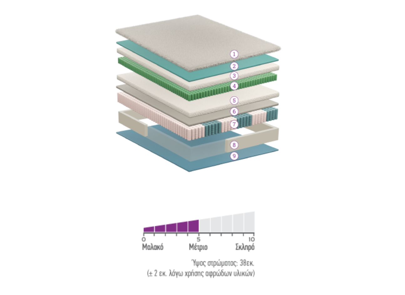 νέας γενιάς μικρά ανεξάρτητα ελατήρια με επίσης 7 ζώνες διαφορετικής σκληρότητας, πλούσιες στρώσεις με αφρώδη